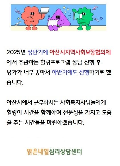 미애 이 2025년 09월 16일 밝은내일 소식 아산시지역사회보장협의체 힐링프로그램 진행에 댓글 닫힘